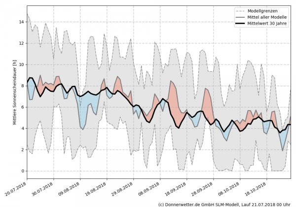 Unsere aktuellen Langfristprognosen für Lufttemperatur, Sonnenscheindauer und Niederschlagshöhe.
