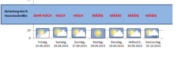 Die Feuchtigkeit in der Luft sorgt vor allem am Freitag und Samstag dieser Woche für hohe Hausstaubbelastungen in den Innenräumen.