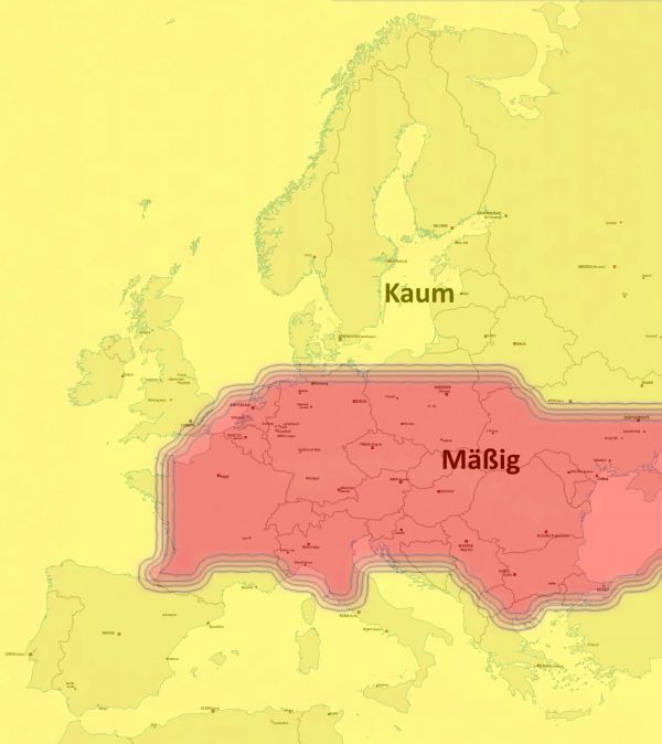 Die Karte zeigt die europaweiten Belastungen für Allergiker durch Beifußpollen bis zum 07.07.2016: