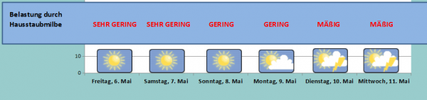 Vor allem nach dem langen Super-Sonnen-Wochenende laufen bei Hausstauballergikern wieder zunehmend die Nasen. Zu Beginn der neuen Woche könnten sich zu den milden Temperaturen nämlich einzelne Schauer und Gewitter gesellen, die dann zu einem Anstieg der Luftfeuchtigkeit in den Innenräumen führen könnten.