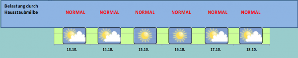 Das weitgehend trockene Wetter am Wochenende und in der neuen Woche senkt das Hausstaubpotential in unseren Innenräumen. Auch in den kommenden Woche wird ein Anstieg der Hausstaubmilben aus bleiben.