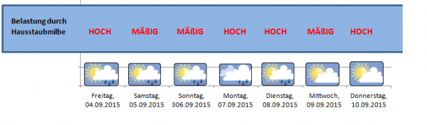 Derzeit bestehen in Innenräumen mäßige bis hohe Hausstaubbelastungen.