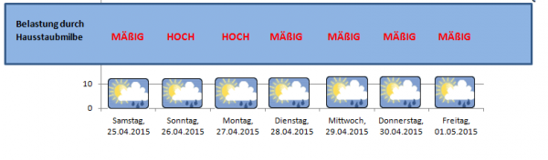 Durch die zunehmende Feuchtigkeit der Tiefdruckaktivität außen, nimmt die Belastung durch Hausstaubmilben nun wieder zu.
