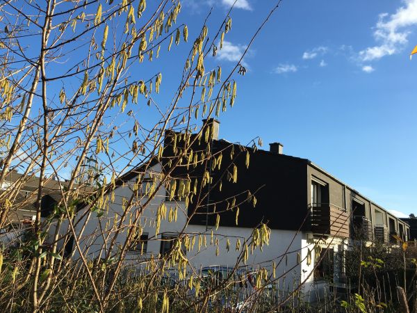 In den kurzen trockenen Phasen sind Hasel- und Erlenpollen in der Luft unterwegs. Zumeist wird die Luft später vom Regen saubergewaschen.
