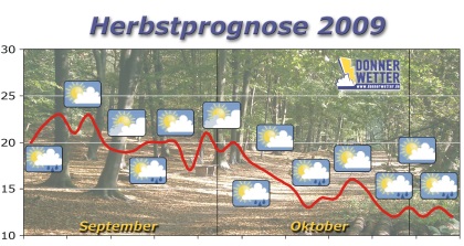 Nach dem Achterbahn-Sommer erwarten die Bonner Meteorologen nun einen goldenen Herbst: „Das Wetter wird den Wahlkämpfern viele sonnige Tage auf den Marktplätzen der Republik bescheren“, meint Dr. Karsten Brandt (36) von Donnerwetter.de. „Nach unserer Langfrist-Prognose wird es im September und auch im Oktober mehr Sonne als im Durchschnitt geben.“ Außerdem soll es eher trocken und um 1-2 Grad C zu warm werden. Nur kurze Regenphasen unterbrechen die Schönwetterperioden.