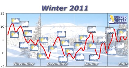 Für den Winter 2011/2012 sieht Brandt noch keine Rückkehr der milden Winter: „Ich rechne mit einer harten winterlichen Phase, mit etwa 6 bis 8 Wochen ‚richtigem Winter’“ Wann diese Phase einsetzt, lässt sich nicht genau vorhersagen. Möglich sei aber auch, dass der Hoch-Winter schon Mitte/Ende Dezember zuschlagen könnte, denn nach den Berechnungen von Donnerwetter.de ist die Wahrscheinlichkeit groß, dass der Februar eher mild verläuft.