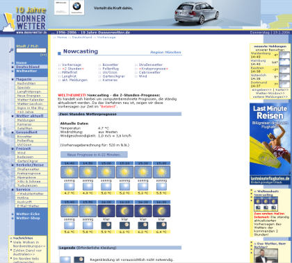 Weltneuheit im Internet: Wetterprognose im 10-Minuten-Takt Kommt man trocken zur Bushaltestelle? Lohnt sich heute noch ein Spaziergang? Die neue 2-Stunden-Prognose des Wetterservice Donnerwetter.de hilft bei vielen Alltagsproblemen mit dem Wetter.