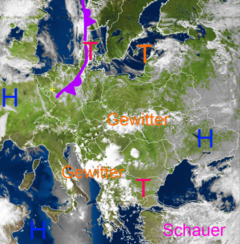 Zahlreiche kleinräumigere Gewitterzellen über Südosteuropa
