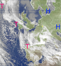 Wolken der Tiefdruckgebiete über dem Atlantik erreichen Britische Inseln.