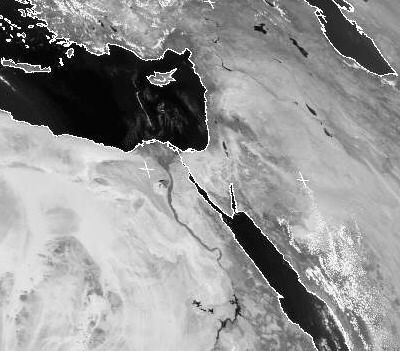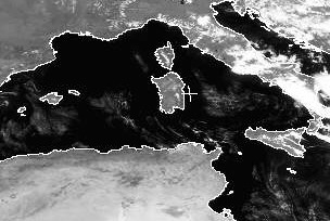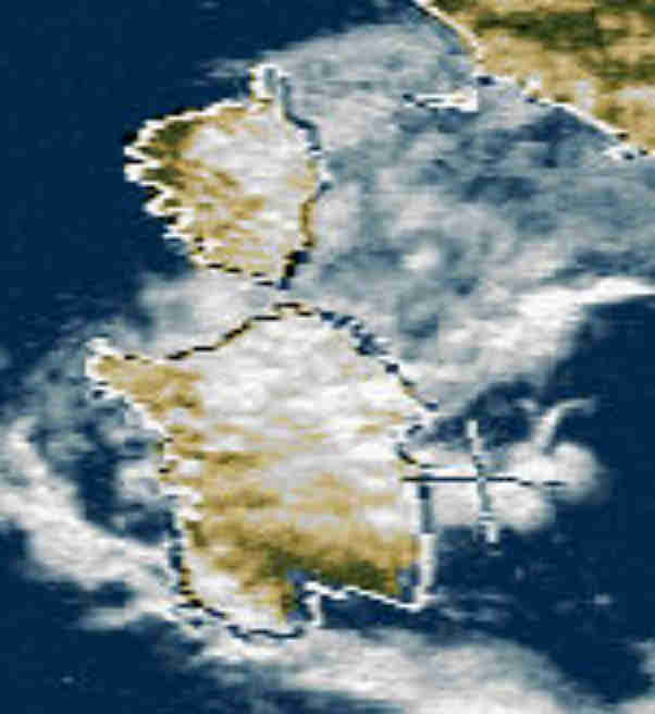 Der Satellit Meteosat, der unser tägliches Wetterbild aus dem All liefert, hat eine Auflösung von 5 * 5 km pro Punkt im Wärmebild. (c) Eumetsat Im sichtbaren Bereich ist die Auflösung etwas höher. Hier ist ein Punkt etwas 2.5 km * 2.5 km groß. Folgende Zooms zeigen die Grenzen der Auflösung der Satellitenbilder. | |||||||||