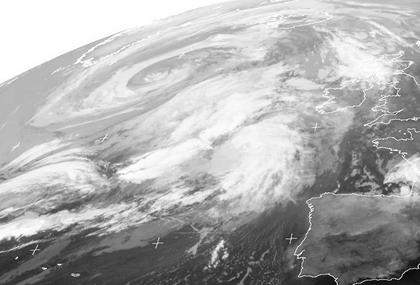 Auf dem Atlantik ist bereits das nächste Tief im Anmarsch. Während das alte Tiefdruckgebiet im Norden zwischen Island und Grönland schon sehr weit in seiner Entwicklung fortgeschritten ist, hat sich an seiner Südflanke an der Kaltfront ein neues Tiefdruckgebiet aus einer Welle in der Luftmassengrenze gebildet. Es wird sich schnell verstärken, und in den nächsten Tagen den Platz des alten Tiefs übernehmen.