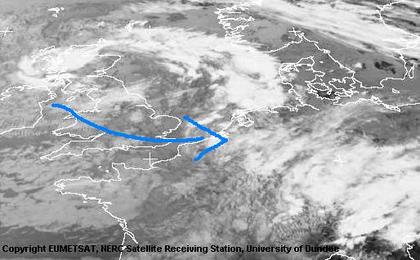 Aus Westen gelangt derzeit kühlere und feuchte Luft vom Atlantik nach Mittel- und Westeuropa. Damit wir die schwüle und heiße Phase endgültig beendet.