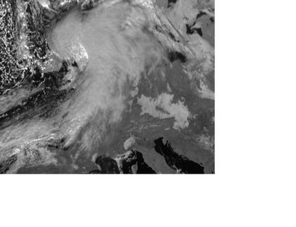 Dichte Wolken erstrecken sich, auf dem Satellitenbild von Sonntag Mittag, von Südskandinavien über die Nordsee und Großbritannien bis nach Frankreich und Nordspanien. Sie gehören zu einem Tief seinem Zentrum über Schottland und bringen teils ergiebigen Regen. Weiter im Osten bringt Hochdruckeinfluss dagegen meist freundliches und trockenes Wetter.