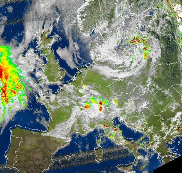 Auf dem Satellitenfoto vom heutigen Nachmittag ist das Tief "Greta" über der Ostsee zu erkennen, es bringt vor allem den Baltikumstaaten, aber auch dem Süden und Osten von Skandinavien oft dichte Bewölkung und mit Schauern durchsetztes Wetter. Ein kleines Tief liegt auch über Ostfrankreich, dabei bildeten sich auch über weiten Teilen Baden-Württembergs bis ins Saarland gebietsweise Schauer und auch Gewitter.