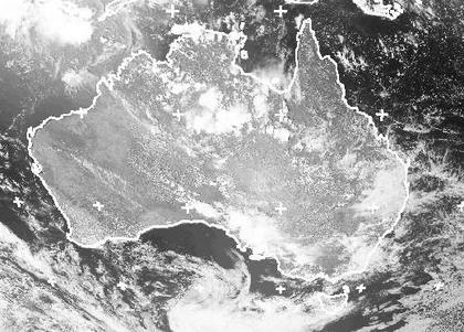 Über Australien findet man nicht nur im Norden, sondern auch in Südaustralien, Victoria und im Osten die Wolken einzelner, sommerlicher Gewitter. Am wenigsten bewölkt ist es im Westen. Hier können die lockeren Wolken noch am ehesten an der Südwestküste einzelne Schauer bringen. (Bildquelle: NERC Satellite Receiving Station, Dundee University, Scotland, http://www.sat.dundee.ac.uk/)