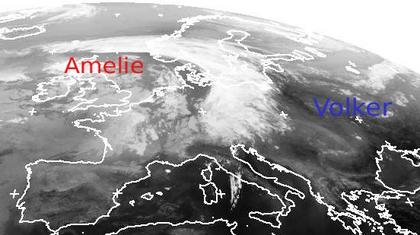 Auf dem Satelittenfoto von heute Morgen erkennt man die Kaltfront von Tief 'Amelie' in einem Streifen von Südskandinavien, über die Ostsee, Polen, Tschechien bis in die Slowakei. Hier entwickeln sich bei mäßig bis heißen Temperaturen teils kräftige Gewitter mit extremen Unwetterpotential, sogar die Gefahr einzelner Tornados besteht. Im übrigen Europa ist es dagegen eher ruhig und besonders am Mittelmeerraum auch häufig wolkenlos.