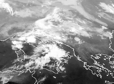 Über Italien und Südosteuropa erkennt man die Bewölkung von teils kräftigen Gewittern.