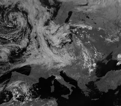Während Südeuropa unter Einfluss von Hoch 'Fred' wolkenarm ist, sorgen die Tiefs 'Yvette' und 'Zusel' für dichte Wolken in West- und Mitteleuropa.