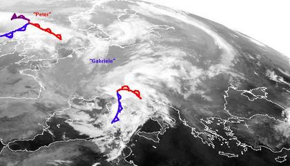 Während Schottland in den Einflussbereich von Tief 'Peter' gelangt, sorgt ein weiteres Tief über Norditalien noch Schauer, zum Teil auch Gewitter. Zwischen Diesen Tiefs bringt eine Hochdruckbrücke von den Azoren bis nach Russland meist freundliches Wetter.