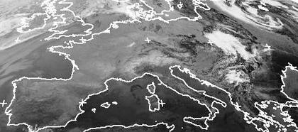 Auf dem Satellitenbild vom Samstag Morgen sind Gewitterwolken über Osteuropa zu erkennen, sie gehören dem Tief 'Jamie', das am Donnerstag und Freitag für Regen in Deutschland sorgte; das Tief hat sich etwas abgeschwächt, auf dem Balkan bringt es aber heute noch zum Teil kräftige Gewitter. In weiten Teilen Südwest- und Mitteleuropa gibt es unter dem Einfluss von Hoch 'Ezalda' nur wenige Wolken. (Bildquelle: NERC Satellite Receiving Station, Dundee University, Scotland, http://www.sat.dundee.ac.uk/)