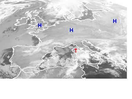 Tiefdruckgebiete sorgen im westlichen Mittelmeer, von den Balearen bis an die Adria und Griechenland, für dichte Wolken mit Regen oder Schnee, teils sind auch Gewitter möglich. Auch über Skandinavien bringt ein Tiefausläufer dichte Wolken mit Schnee. Sonst bleibt es unter Hochdruckeinfluss meist freundlich und trocken, aber kalt. (Bildquelle: NERC Satellite Receiving Station, Dundee University, Scotland, http://www.sat.dundee.ac.uk/)