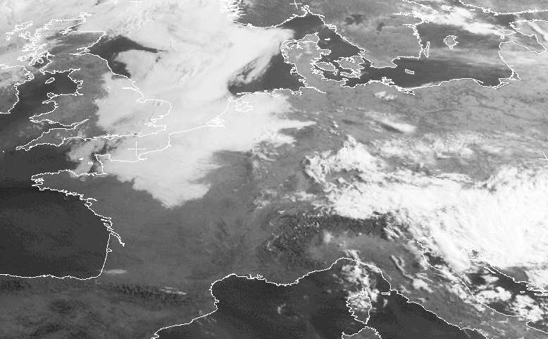 Hoch 'Zoe' sorgt für geringe Bewölkung vom Atlantik bis zum Baltikum. Von England bis nach Nordwestdeutschland liegt jedoch eine Hochnebeldecke. Im Südosten Deutschlands liegt höherreichende Schauer- und Gewitterbewölkung, die noch unter dem Einfluss von Höhentief 'Bernhard' über dem Balkan entstanden ist.