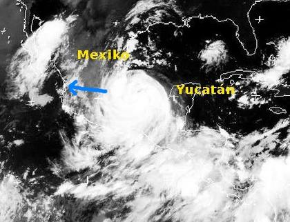 Nachdem der Hurrikan 'Dean' über die Halbinsel Yucatán in Mexiko gezogen ist, hat er deutlich an Stärke verloren und erreichte nur noch die Kategorie Eins auf der Safir-Simpson-Skala. Über dem Golf von Mexiko kann er durch das Feuchteangebot über dem Meer aber wieder an Kraft gewlnnen und die Kategorie Zwei erreichen. Seine Windstärke beträgt derzeit im Mittel etwa 150 km/h, in Böen werden 180 km/h gemessen. Das Auge des Hurrikans, das zwischenzeitlich nicht mehr zu sehen war, ist nur wieder vorhanden. In der Nacht zum Donnerstag wird 'Dean' ein zweites Mal in Mexiko an Land gehen und dann ziemlich bald deutlich an Energie verlieren. (Bildquelle: NERC Satellite Receiving Station, Dundee University, Scotland, http://www.sat.dundee.ac.uk/)