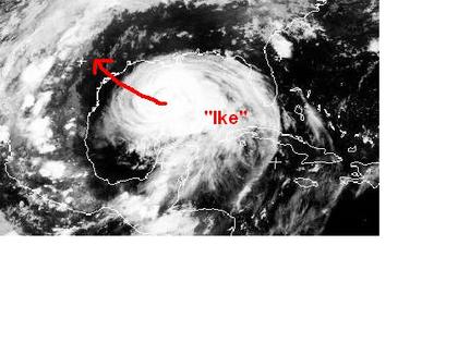 Der Hurrikan 'Ike' ist auf dem Satellitenbild von Freitag früh über dem Golf von Mexiko gut zu erkennen. Zurzeit erreicht er mittlere Windgeschwindigkeiten von 155, in Böen 195km/h. Berechnungen zufolge soll er sich noch etwas verstärken und am Samstag auf die Küste von Texas treffen. Dabei ist mit ergiebigen Niederschlägen zu rechnen, an der Küste besteht Sturmflutgefahr. (Bildquelle: NERC Satellite Receiving Station, Dundee University, Scotland, http://www.sat.dundee.ac.uk/)