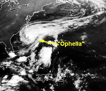 Der Hurrikan 'Ophelia' nähert sich der US-Atlantikküste, nach den neuesten Berechnungen streift er am Dienstag und Mittwoch mit Windgeschwindigkeiten von etwa 140km/h die Küste von Nordcarolina.