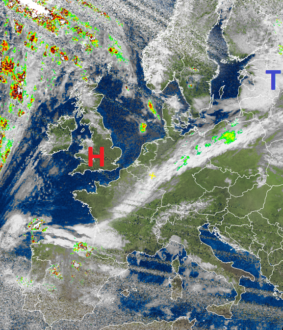 Auf dem Satellitenfoto von heute Vormittag erstreckt sich eine Kaltfront des Tiefs über Nordosteuropa einmal quer über Deutschland. In diesem Bereich fiel und fällt immer noch zeitweise Regen. Vor und hinter der Front herrscht dagegen trockenes und oft freundliches Wetter, wobei es hinter der Front, hierbei über dem Norden und Westen Deutschland deutlich kühlere Luft aus Nordwesten nachgeströmt ist. Sehr freundliches und trockenes Hochdruckwetter herrscht auch fast im gesamten Mittelmeerraum, wobei über Nordspanien vereinzelte Schauerzellen zu erkennen sind. Dagegen bringt Tiefdruckeinfluss über Nord- und Nordosteuropa meist sehr durchwachsenes Wetter mit Schnee, Schneeregen oder Regen.