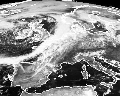 Tief 'Lieselotte' liegt über den Britischen Inseln. Recht deutlich zeichnet sich auf dem Satellitenbild der Verlauf seiner Kaltfront ab. Sie erstreckt sich entlang des Wolkenbands von der nördlichen Nordsee über den Ärmelkanal zur Biskaya. Auf ihrer Rückseite, wo von Westen kühlere Luft heranströmt, findet man nur einige lockere Wolken. In Deutschland war es am Dienstag auf der Vorderseite der Front noch teils aufgelockert bewölkt, nur langsam zieht hier von Westen die Bewölkung herein. Am Mittwoch liegt die Front aber quer über Deutschland.