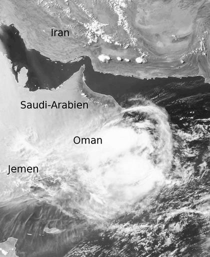 Die Bewölkung eines kleinen Tiefdrucksystems liegt am Freitag Mittag über dem östlichen Jemen und vor allem über dem Oman. Klimatisch betrachtet beträgt die Anzahl der Regentage im Juni im Oman durchschnittlich nur 0 Tage, es ist also eher selten, dass es hier mal regnet. Allerdings bringt auch dieses Tief kaum Niederschläge in das Land selber, auf dem Meer dagegen regnet es schon. Sonst ist es am Persischen Golf eher gering bewölkt, lediglich im Iran ist die Bildung örtlicher Schauer- oder Gewitterzellen zu sehen. (Bildquelle: Copyrigt EUMETSAT, NERC Satellite Receiving Station, University of Dundee)