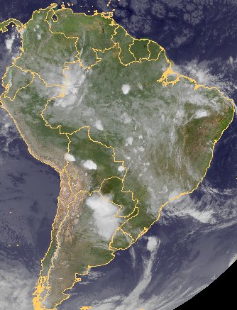 Auf dem heutigen Satellitenfoto von Südamerika sind über Teilen von West- und Südbrasilien starke Quellwolken zu erkennen, die dort für teils kräftige Schauer und Gewitter sorgen. Auch im Nordosten Argentiniens regnet es vielfach langanhaltend und teils kräftig.