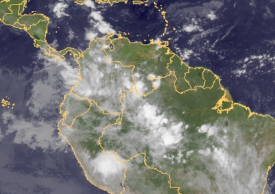 Über dem Norden von Südamerika haben sich Schauer und Gewitter entwickelt. Diese entstehen im Zusammenhang mit der innertropischen Konvergenzzone.