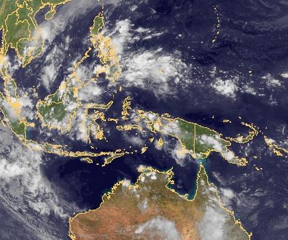 Kräftige Schauer und Gewitter über Indonsien und Neuguinea