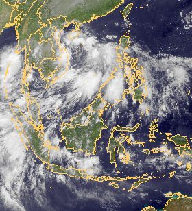Über Südostasien haben sich kräftige Schauer und Gewitter entwickelt.