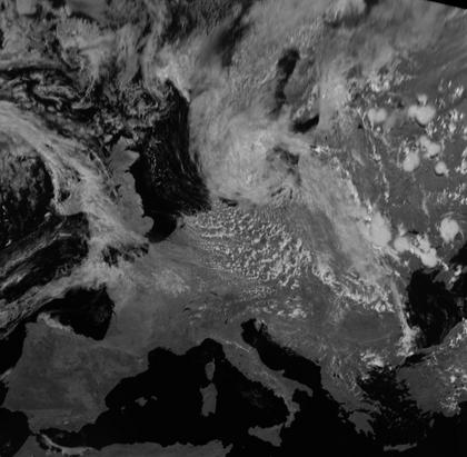 Das Zentrum von Sturmtief 'Martin' liegt am Freitagmittag mit seinen dichten Wolken bereits über Südschweden. Deutschland liegt im Bereich einer kühlen Luftströmung von Nordwesten her. Dabei haben sich lockere Schauerwolken gebildet. Deutlich stärker ausgebildet sind einzelne Gewitterzellen über Russland.
