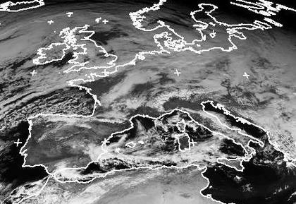 Hochdruckeinfluss sorgt über Westeuropa meist für trockenes Wetter. Dennoch können sich aber teils dichte, aber flache Wolkenfelder halten. Deutschland ist fast vollständig von Wolken bedeckt und teils kann es hier leicht regnen. Hier spielt der Zustrom von feuchter Luft aus Nordwesten eine Rolle. Einzelne Schauer oder auch kurze Gewitter gibt es vor allem am Mittelmeer.