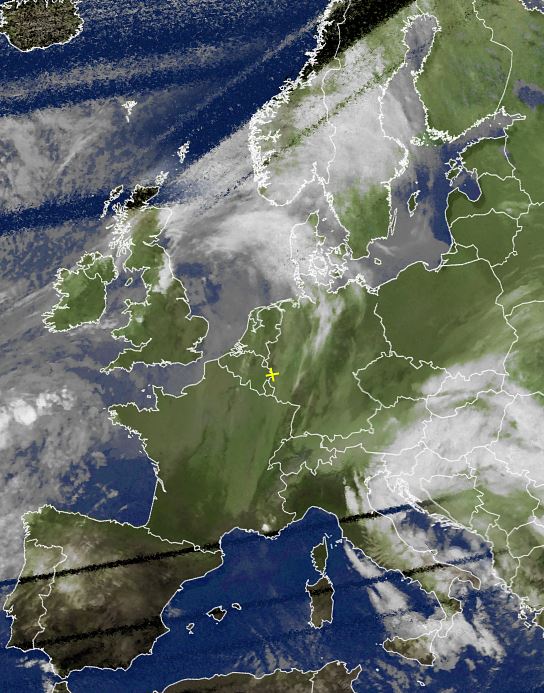 Das Satellitenbild von heute Nachmittag zeigt ein ausgedehntes Tiefdrucksystem mit Kern über dem Balkan, es erstreckt sich von den östlichen Alpen bis weit in den Südosten Europas und sorgt für verbreitet nasskaltes Wetter mit teils anhaltenden Regenfällen und in höheren Lagen teilweise ergiebigen Schneefällen.