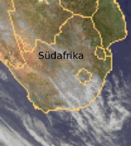 Südafrika zeigt sich heute teils wolkenlos, vor allem nach Süden hin ziehen aber auch dichtere Wolken durch, sie bringen aber keinen Regen. Die Temperaturen sind aber im Land des Fußball-WM-Gastgebers 2010, wo derzeit der Konförderationen-Cup ausgetragen wird, eher kühl, da auf der Südhalbkugel derzeit Winter ist, so wie es bei der WM 2010 dann auch sein wird.