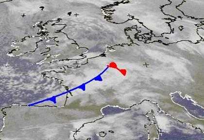 Über den Britischen Inseln liegt weiterhin das Sturmtief 'Vitus', das einen großen Teil Europas mit wolkig-regnerischem Wetter bestimmt. Über Frankreich hat sich zudem ein Randtief zu 'Vitus' entwickelt, das mit seinen Regenwolken am Abend und in der Nacht über Deutschland hinweg zieht.