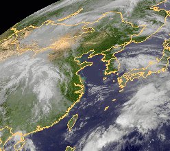 Im Landesinneren Chinas erkennt man viele Wolken, hier kommt es häufig zu Regen oder auch Gewittern. Weniger Wolken findet man unter leichtem Hochdruckeinfluss an der Ostküste und im Nordosten des Landes.