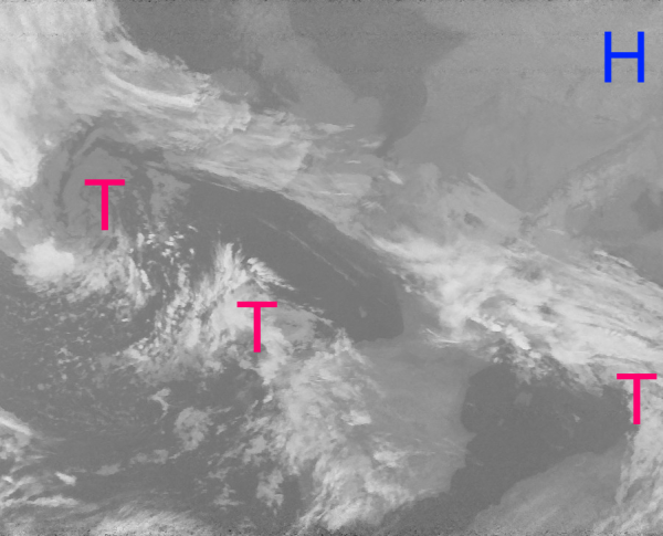 Auf dem heutigen schwarz weiß Foto erkennt man mit Ausnahme einiger Nebelfelder, oder tiefhängender Wolken ein nahezu wolkenloses Mitteleuropa.
