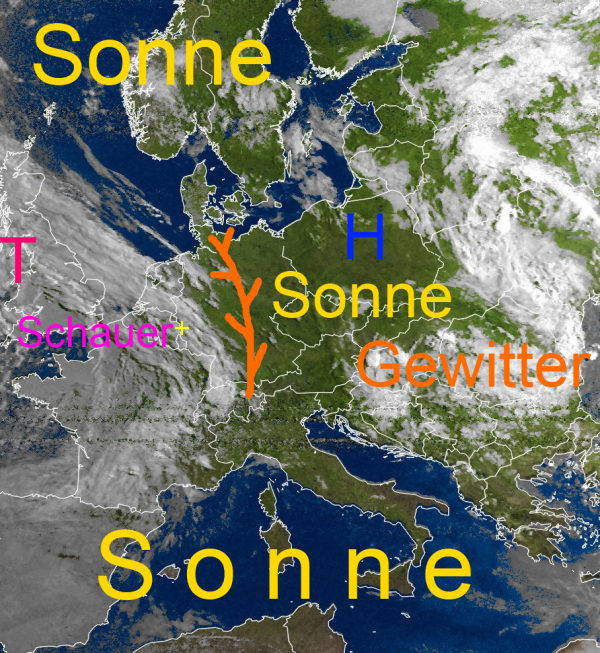 Eine Störungsfront überquert Deutschland von West nach Ost und hat neben dichteren Wolken mit regionalen Schauern und Gewittern auch etwas Abkühlung im Gepäck. Diese leichte Abkühlung ist jedoch nur von kurzer Dauer, da es zu Beginn der neuen Woche wieder sehr heiß werden kann.