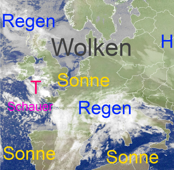 Durchwachsenes Wetter mit Wolken und Sonne hälte sich auch im restlichen Teil unseres Kontinentes.