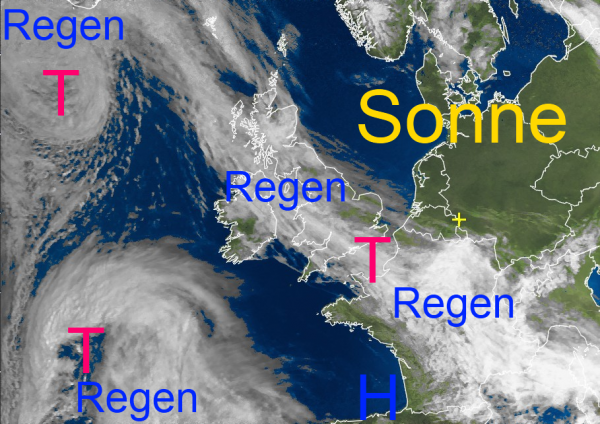 Große Teile von Deutschland, Polen, der Nord- und Ostsee profitieren heute von blauem Himmel und strahlendem Sonnenschein. Nur in den Südwesten ziehen im Tagesverlauf von Frankreich die Wolken des Tiefs über dem englischen Kanal und bringen Regen und örtliche Schauer.