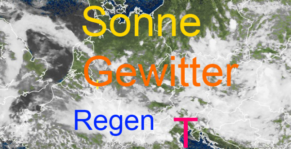 Dazwischen entwickeln sich in der feucht-warmen Luftmasse örtlich mächtige Schauer- und Gewittertürme mit teilweise intensiven Niederschlagsmengen Es kann also stellenweise wieder zu Unwettern und kleinräumigen Überschwemmungen kommen.