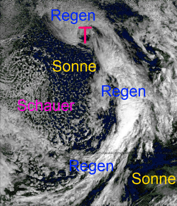 Über dem Atlantik braut sich ein mächtiges Tiefdruckgebiet zusammen, welches sich bis Freitag unter Verstärkung über Westfrankreich einistet. Seine Regenwolken beeinlfussen dabei in abgeschwächter Form den Westen unseres Landes.