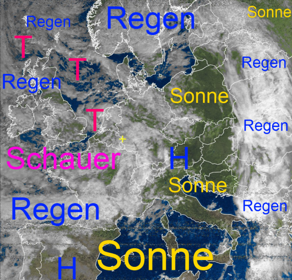 Durchwachsenes Wetter gibt es auch über den Britischen Inseln, Skandinavien und Teilen Osteuropas.