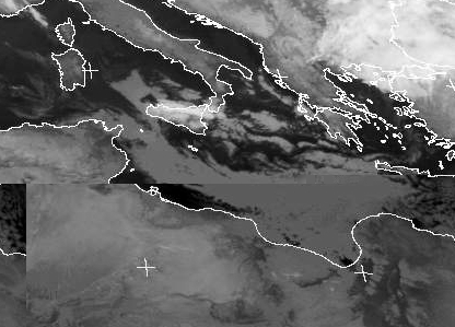 Der Ausschnitt zeigt ein Seenebelfeld im Mittelmeer vor Tunesien und Lybien. Ein Tief im östlichen Mittelmeer hat kalte Luft nach Süden geführt, die danach unter Hochdruckeinfluß geraten ist. Der wolkenfreie Streifen direkt in Küstennähe entsteh durch eine Art Lee-Effekt des Atlasgebirges: dadurch wird die nordwestliche Strömung nach links abgelenkt und es entseht eine ablandige Strömung, mit der trockene Wüstenluft auf das Meer geführt wird.